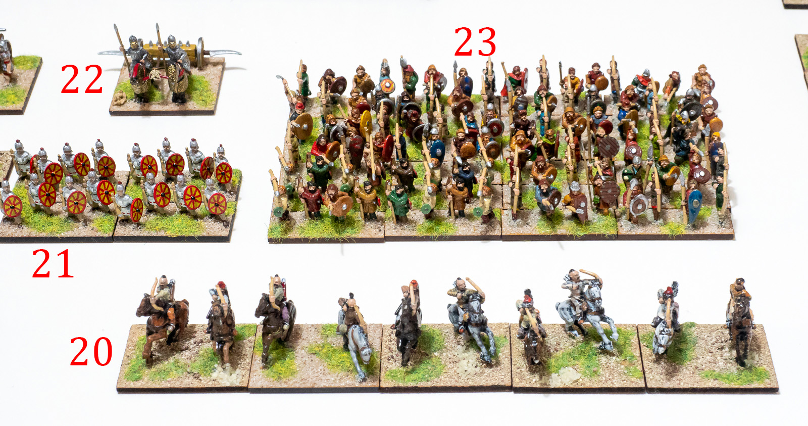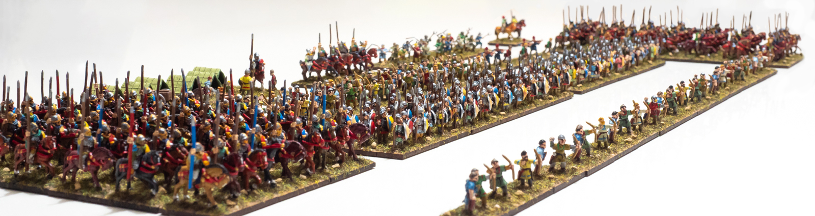 Die 15mm-Figuren sind von Magister Militum, die in meinen Augen die besten und historisch akkuratesten Figuren für diese Armee im Angebot haben. Es handelt sich um annähernd die gesamte Armeeliste, das sind etwas über 1000 Army Points!
