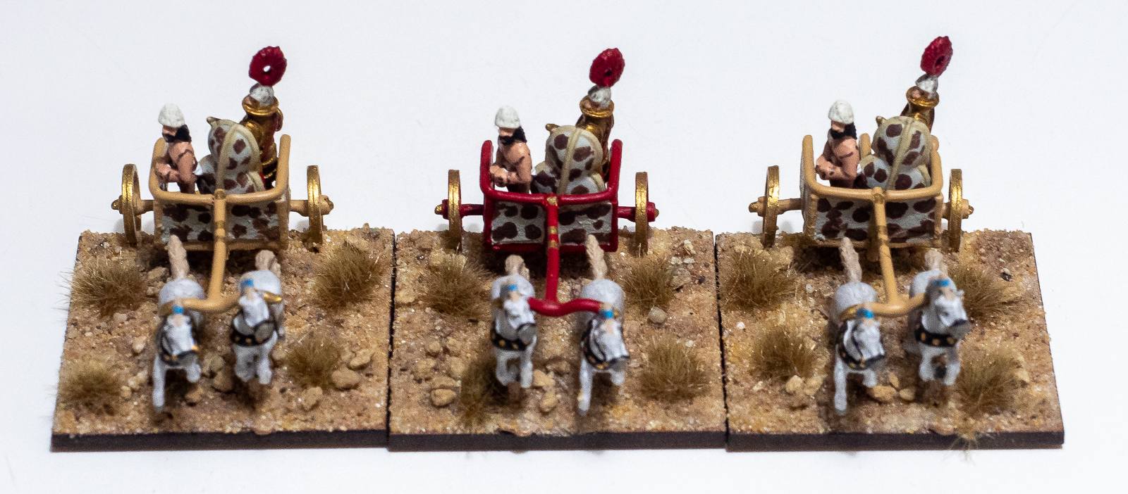Hier präsentiere ich meine bronzezeitliche, frühmykenische Armee, deren hauptsächliche Truppentypen Streitwagen und Lanzenträger sind. Wie immer bei mir, ist es praktisch die komplette Liste (Buch 1/18).