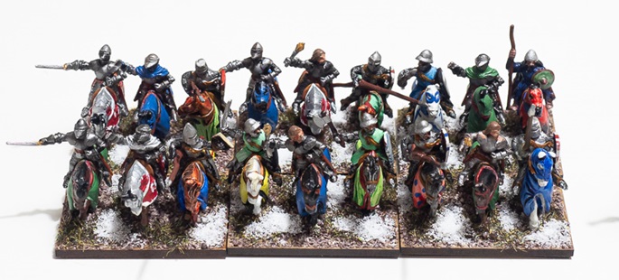 Hier ist meine Armee des Deutschen Ordens (Buch 4/30) in 15mm. Den Großteil der Armee habe ich von einem Spielerkollegen abgekauft. Dazu habe ich ein paar Figuren, einige Lagerelemente und eine Wehrkirche ergänzt. Die gesamte Armee wurde von mir neu basiert - mit ostpreußischen Schneeresten ;)Die Armee ist schwer zu spielen, macht aber sehr viel Spaß...