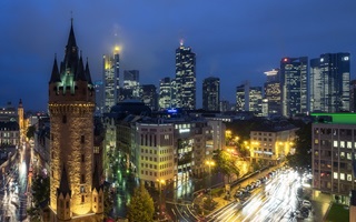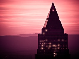 Die Finanzmetropole Frankfurt am Main ist sicherlich die "amerikanischste" aller deutscher Großstädte. Die kühne, mitunter kühle architektonische Ästhetik der Bankentürme bildet ein imposantes, zur spektakulären Weitwinkelfotografie einladendes Fotomotiv in diesem deutschlandweit einzigartigen "Mainhattan".
